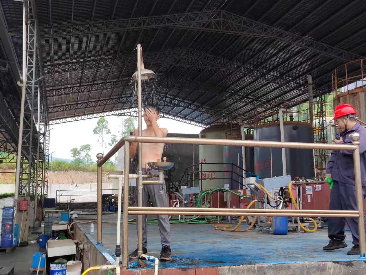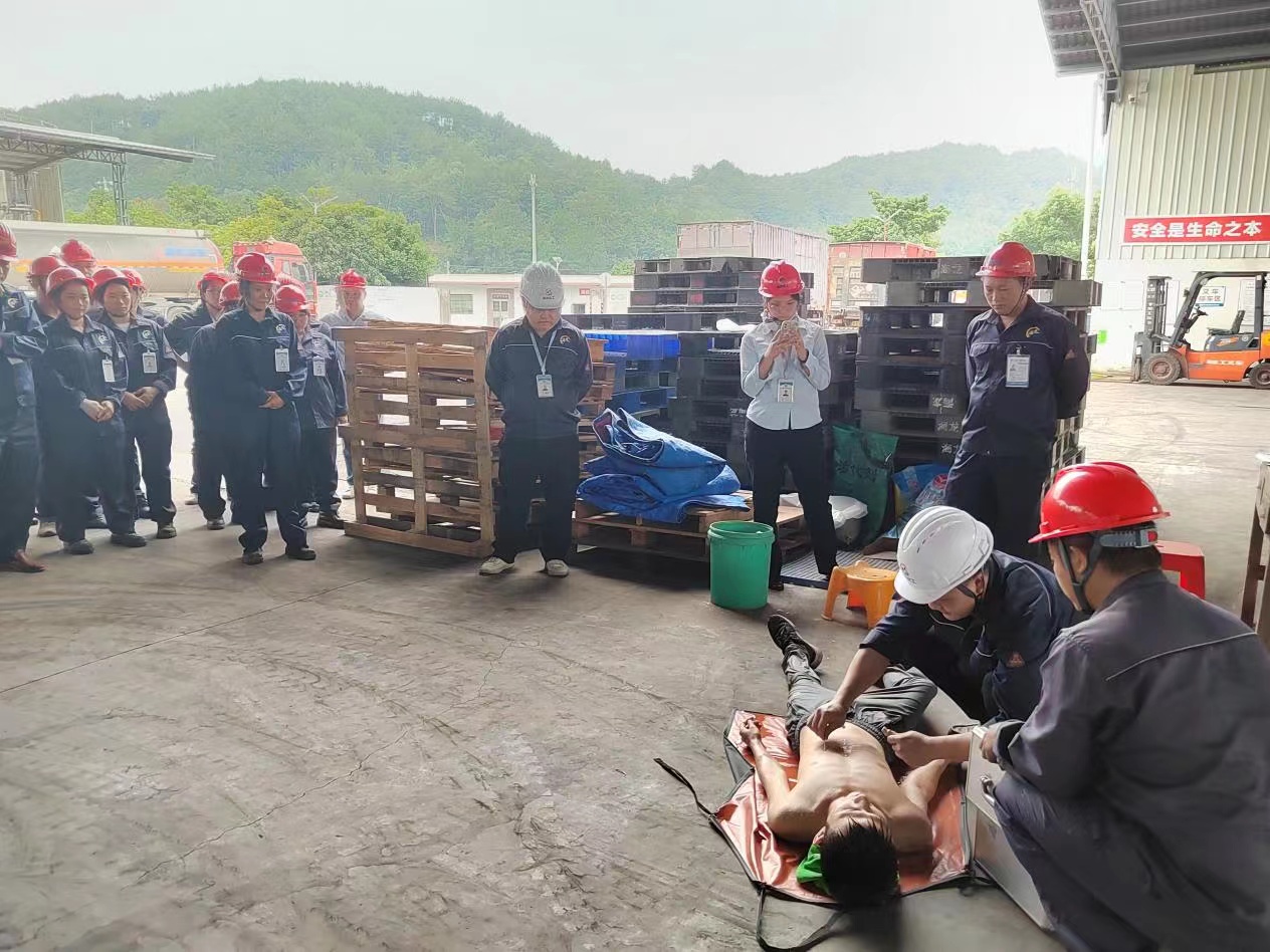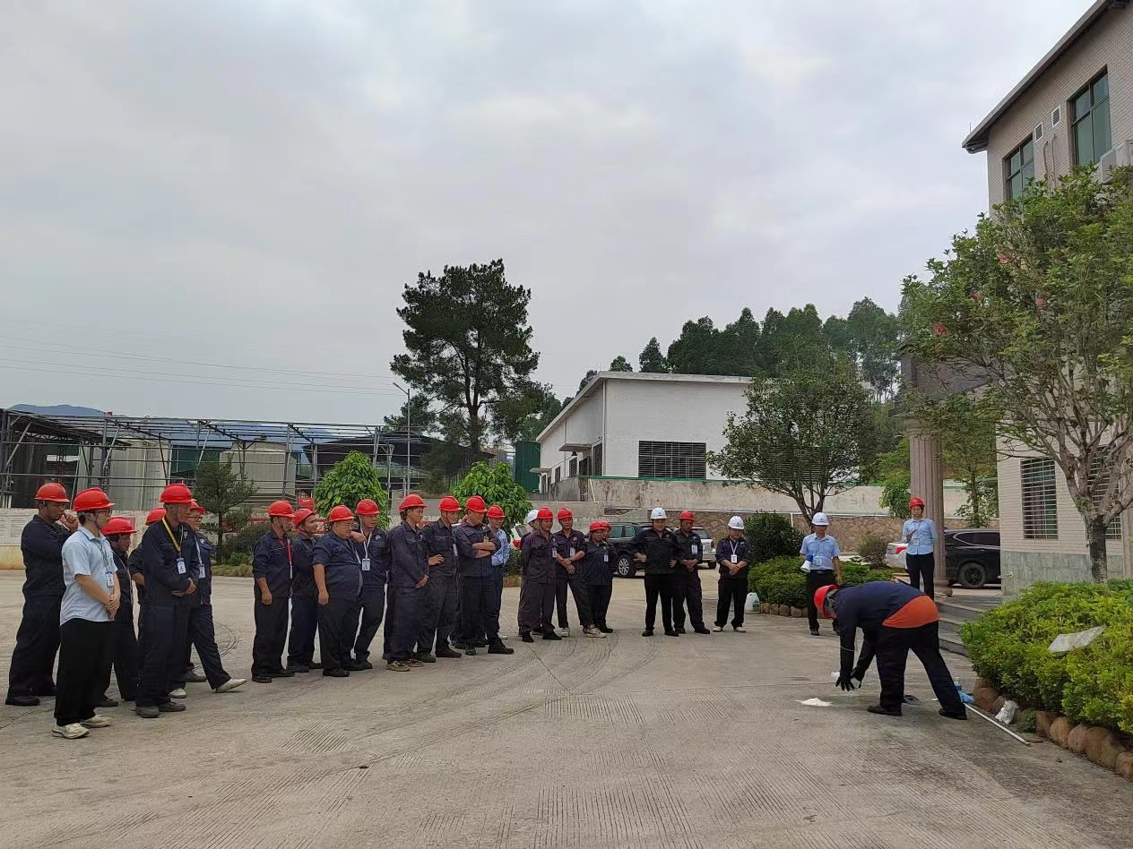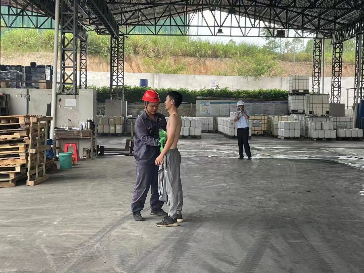 為進(jìn)一步提高員工安全意識(shí),增強(qiáng)員工對(duì)化學(xué)品灼傷事故現(xiàn)場(chǎng)的自救、處置能力和提高消防裝備使用能力,2022年9月22日下午,我司在化工廠區(qū)開(kāi)展了一場(chǎng)化學(xué)品灼傷及消防裝備實(shí)操演練。